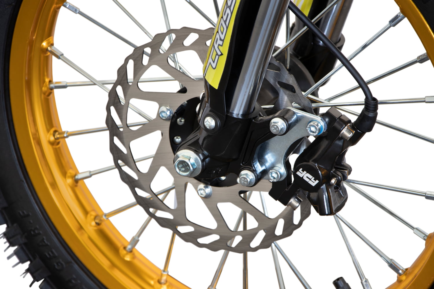 – Fissaggio ruota anteriore con regolazione della pinza freno