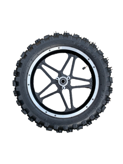 Caratteristiche: modello Ruota POSTERIORE Completa di Cerchio + Gomma 2.50-10 per minicross, facile da installare.