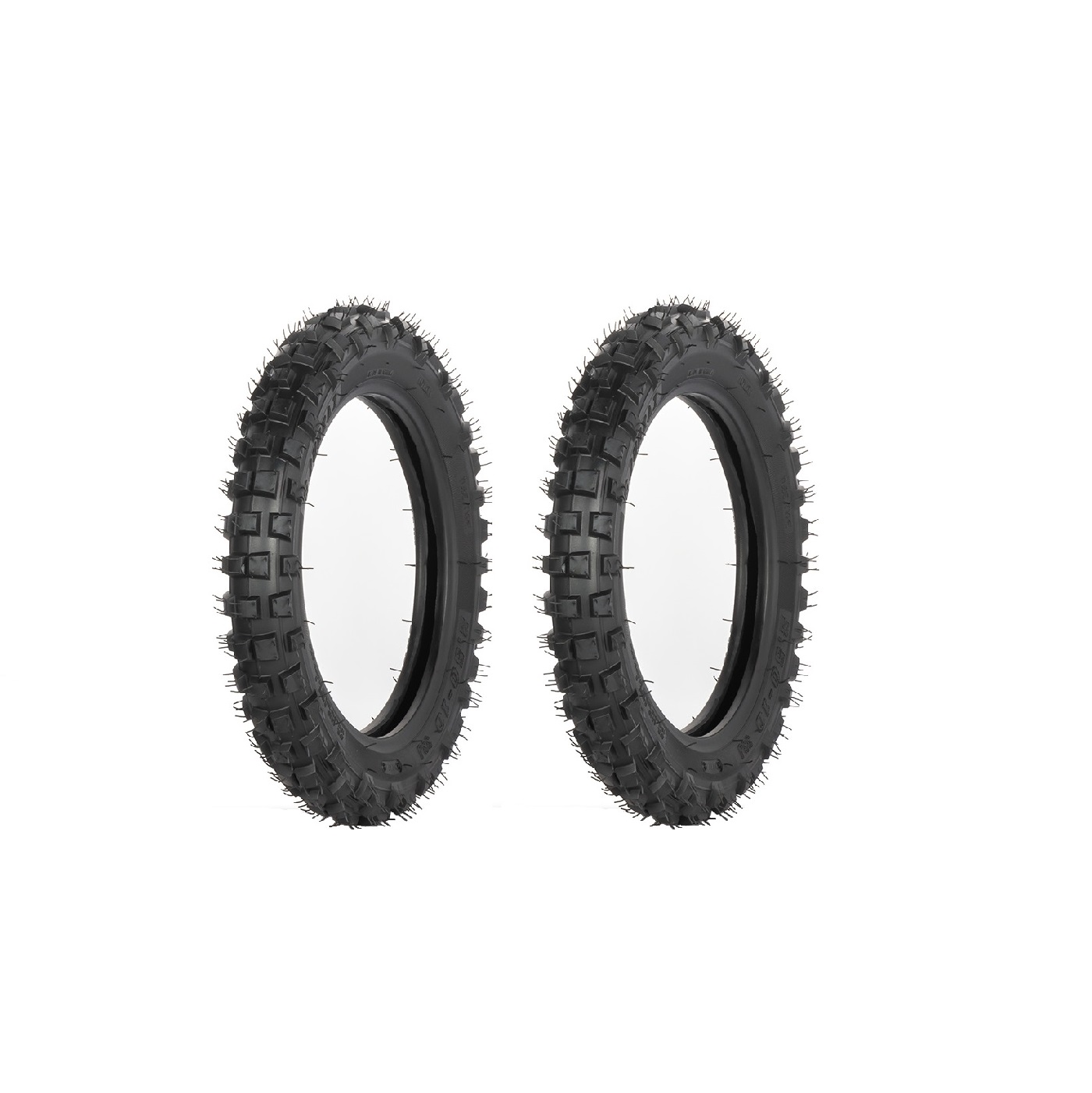Il set da 2 pneumatici 2.50-10 per minicross 49cc è ideale come ricambio completo per mantenere alte le prestazioni della tua moto.